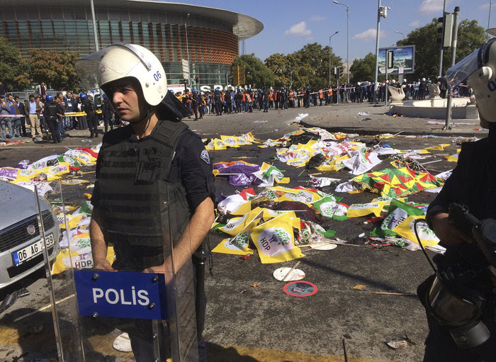 Οι εκρήξεις έγιναν έξω από τον κεντρικό σιδηροδρομικό σταθμό της Άγκυρας πριν την έναρξη πορείας για την ειρήνη που διοοργάνωσε το HDP, το Δημοκρατικό Κόμμα των Λαών. Η συνεργασία δηλαδή της Αριστεράς με τα κουρδικά κόμματα (και άλλες 17 συνιστώσες) η οποία στις πρόσφατες εκλογές εισήλθε στη Βουλή με 13% περνώντας το όριο του 10%.