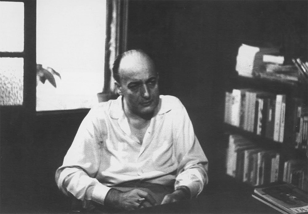 | Συνάντηση ποιητών. Γιώργος Κατσίμπαλης, Νίκος Γκάτσος, Ανδρέας Καραντώνης, Οδυσσέας Ελύτης. (Φωτ. via Το Μώλυ). |