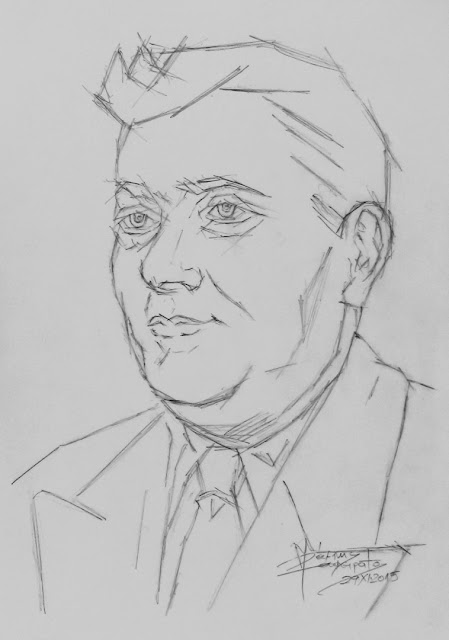 | Κώστας Πουρναράς (Μπόσης) 1908, Χώσεψη (Κυψέλη), Άρτας - 2 Απρίλη 1994, Σιμπίου, Ρουμανίας Σχέδιο, Μπάμπης Ζαφειράτος, 29.XI.2015 (Μολύβι, 29 χ 21 εκ.) |